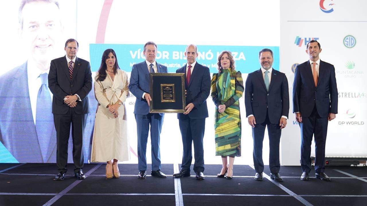 Santo Domingo. La Cámara Americana de Comercio (AMCHAMDR) otorgó un reconocimiento especial al Ministro de Industria, Comercio y Mipymes, Víctor Ito Bisonó, por su destacado liderazgo y valiosos aportes al sector industrial dominicano y a la propia cámara de comercio. Entre sus contribuciones sobresalen la firma de un acuerdo de colaboración interinstitucional para el fortalecimiento del sector empresarial y clima de negocios, el impulso al nearshoring, la promoción de la República Dominicana en foros internacionales y el fomento de la industria de semiconductores.