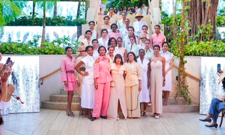 El evento tuvo lugar en la emblemática escalinata del patio interior del prestigioso Hotel Kimpton Las Mercedes, convertida en una cascada dentro de un bosque tropical, que sirvió de pasarela para las modelos exhibir los 40 looks de la colección SS2025, bajo la dirección de Sócrates McKinney. La pasarela se inauguró con la destacada presencia de Celinee Santos, Miss República Dominicana Universo 2024, quien marcó el inicio de una noche inolvidable.