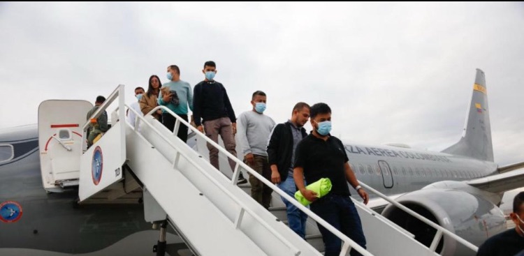Un avión de la Fuerza Aeroespacial Colombiana (FAC) que transporta a 110 ciudadanos deportados de Estados Unidos aterrizó este martes en el aeropuerto internacional El Dorado de Bogotá.
