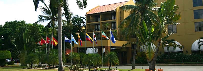Inaugurado en 1975, el Hotel Santo Domingo fue durante décadas un referente de la hotelería de lujo en el país, destacándose por su arquitectura moderna y su ubicación estratégica frente al mar Caribe. El diseño de sus espacios interiores estuvo a cargo del reconocido modista dominicano Óscar de la Renta, quien imprimió al hotel una elegancia sobria y tropical.