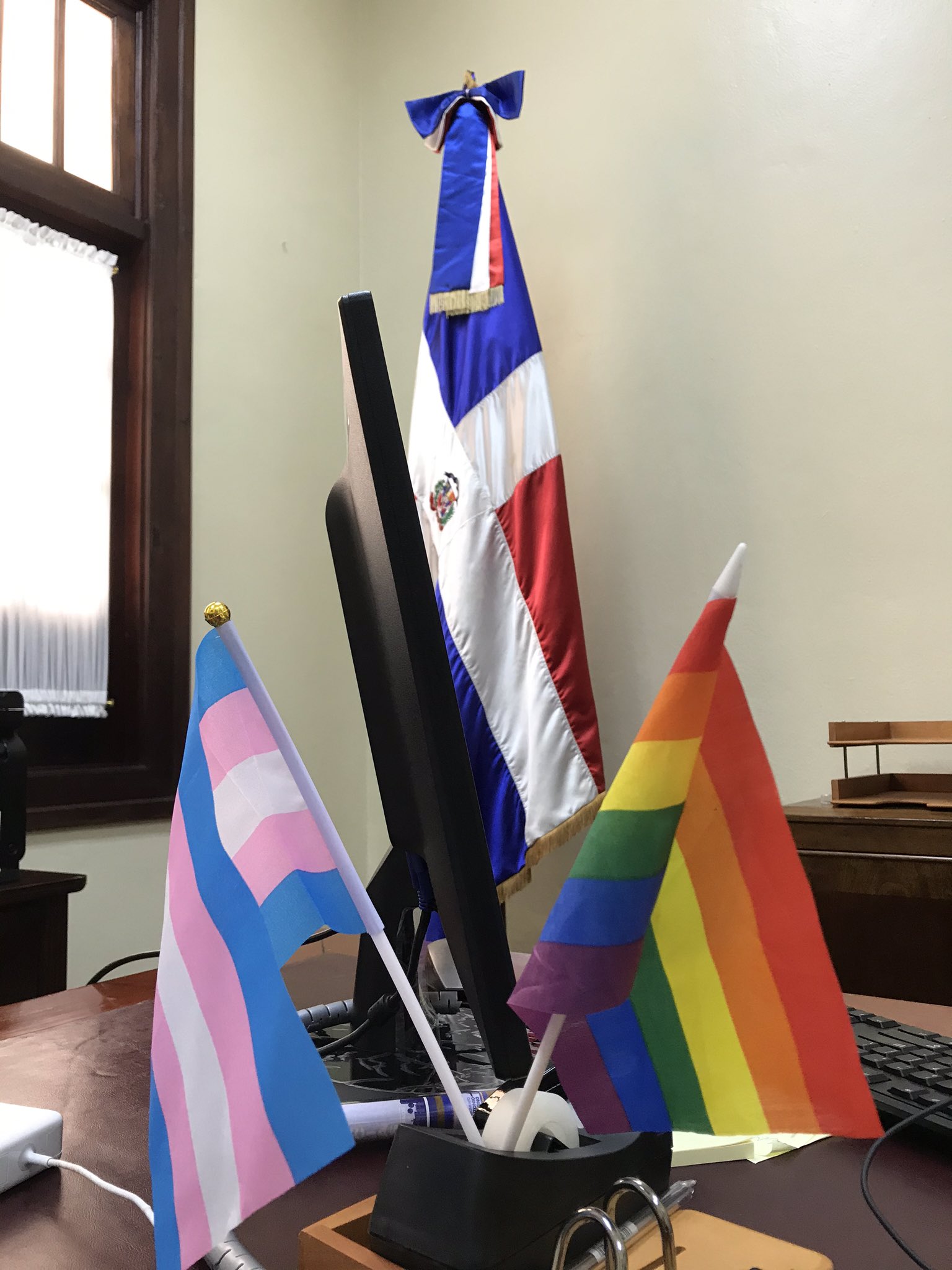 La funcionaria aseguró que sólo cumple con la Constitución al abrirle las puertas de su despacho a todas las personas, tras las críticas del diputado Elías Wessin Chávez por ella colocar una bandera representativa de la comunidad LGBT en su despacho.