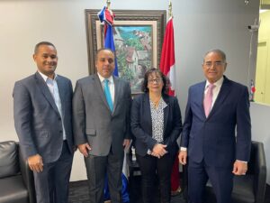 En su visita al Consulado Dominicano en Montreal, Cruz Pichardo estuvo acompañado del Embajador dominicano ante la OACI, Julio Peña y el encargado de Pasaportes, Eduard Sánchez.