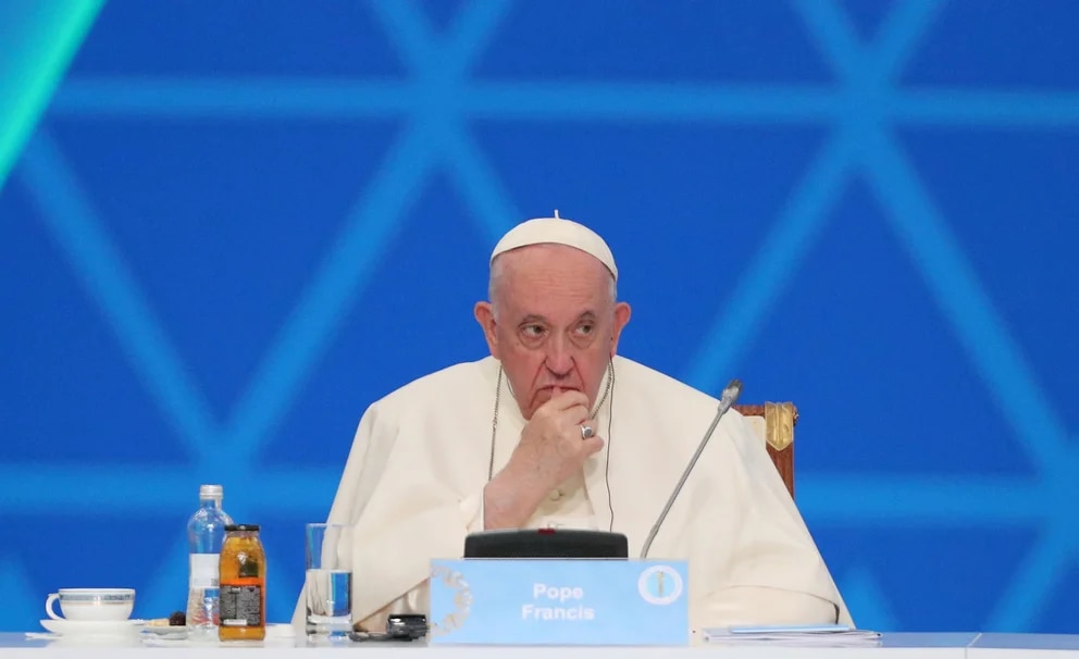 El obispo Athanasius Schneider reacciona junto al Papa Francisco mientras visita la Catedral de Nuestra Señora del Perpetuo Socorro para reunirse con obispos, sacerdotes, diáconos, personas consagradas, seminaristas y trabajadores pastorales, en Nur-Sultan, Kazajstán, el 15 de septiembre de 2022. REUTERS/Remo CasilliEn concreto, Schneider se unió al cardenal estadounidense Raymond Burke en su crítica al documento firmado en 2019 por Francisco y el gran imán de la universidad al-Azhar de El Cairo que, entre otras cosas, decía que todas las religiones son “queridas por Dios”. Algunos críticos católicos sostienen que esa idea podría conducir a un relativismo que aceptaría que todas las religiones son caminos igual de válidos a Dios, cuando el Vaticano sostiene que el catolicismo es el único camino verdadero a la salvación.