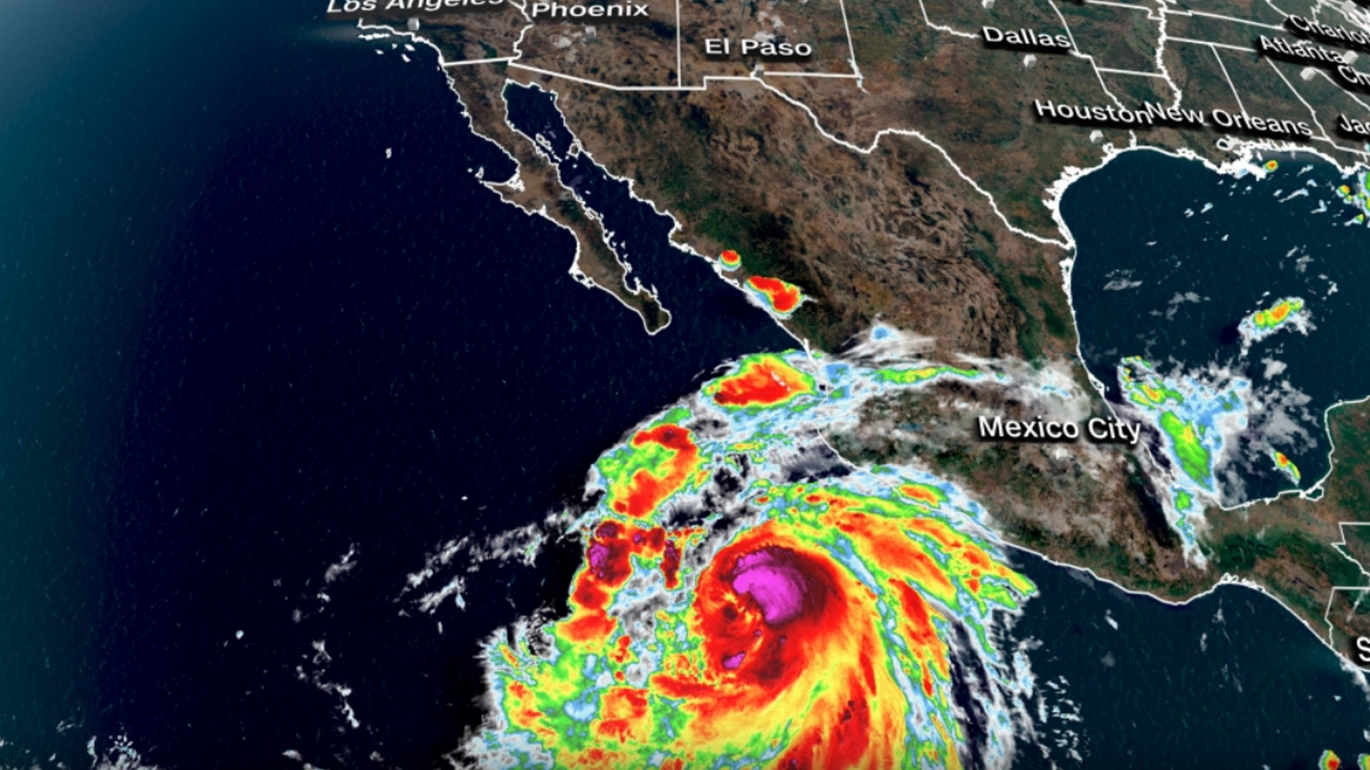El huracán Hilary se encuentra a unos 900 km al sur-sureste de Cabo San Lucas, México y se mueve hacia el oeste-noroeste a 46 km/h.
