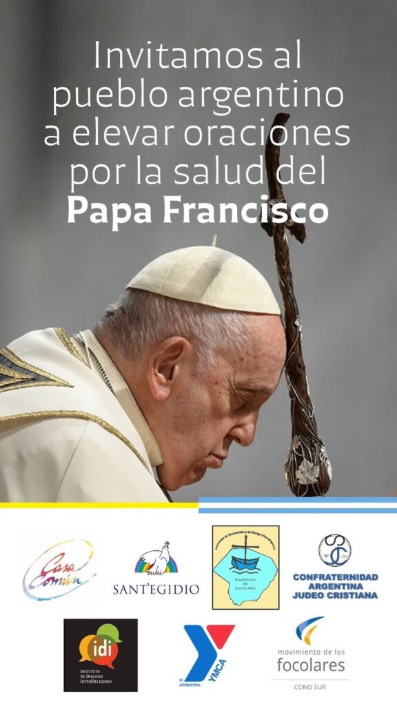 Distintas instituciones religiosas convocan a todas las comunidades al pueblo argentino a rezar por la salud del papa Francisco, quien se encuentra internado en Roma debido a un cuadro de neumonía bilateral.