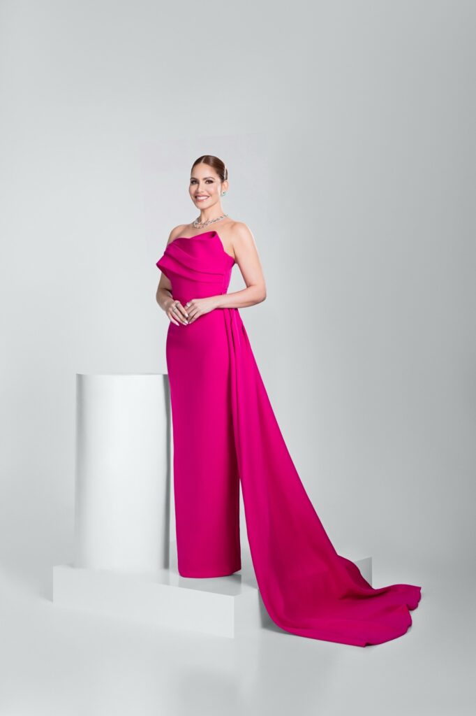 La destacada comunicadora lució un hermoso vestido que resaltaba esa personalidad de mujer elegante, sofisticada, regia y de buen gusto, una creación del diseñador Jusef Sánchez, estilismo de Jozuary Jadill, maquillaje de Ken López y peinado de Nadiel Beltrán