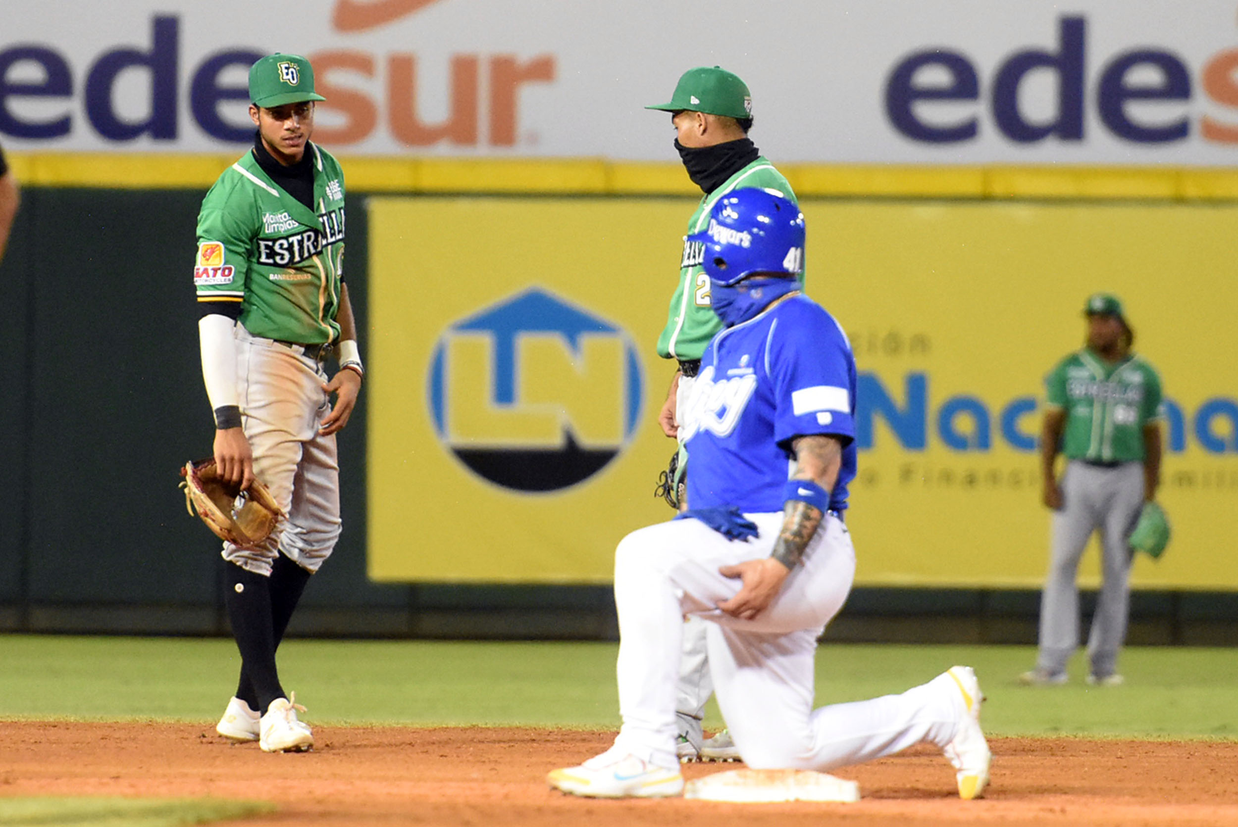 Los azules anotaron su espeso rally de cinco vueltas en el séptimo, siendo un doblete de Anderson Tejeda remolcador de dos vueltas y un triple de Carrasco que trajo otra los batazos más importantes.