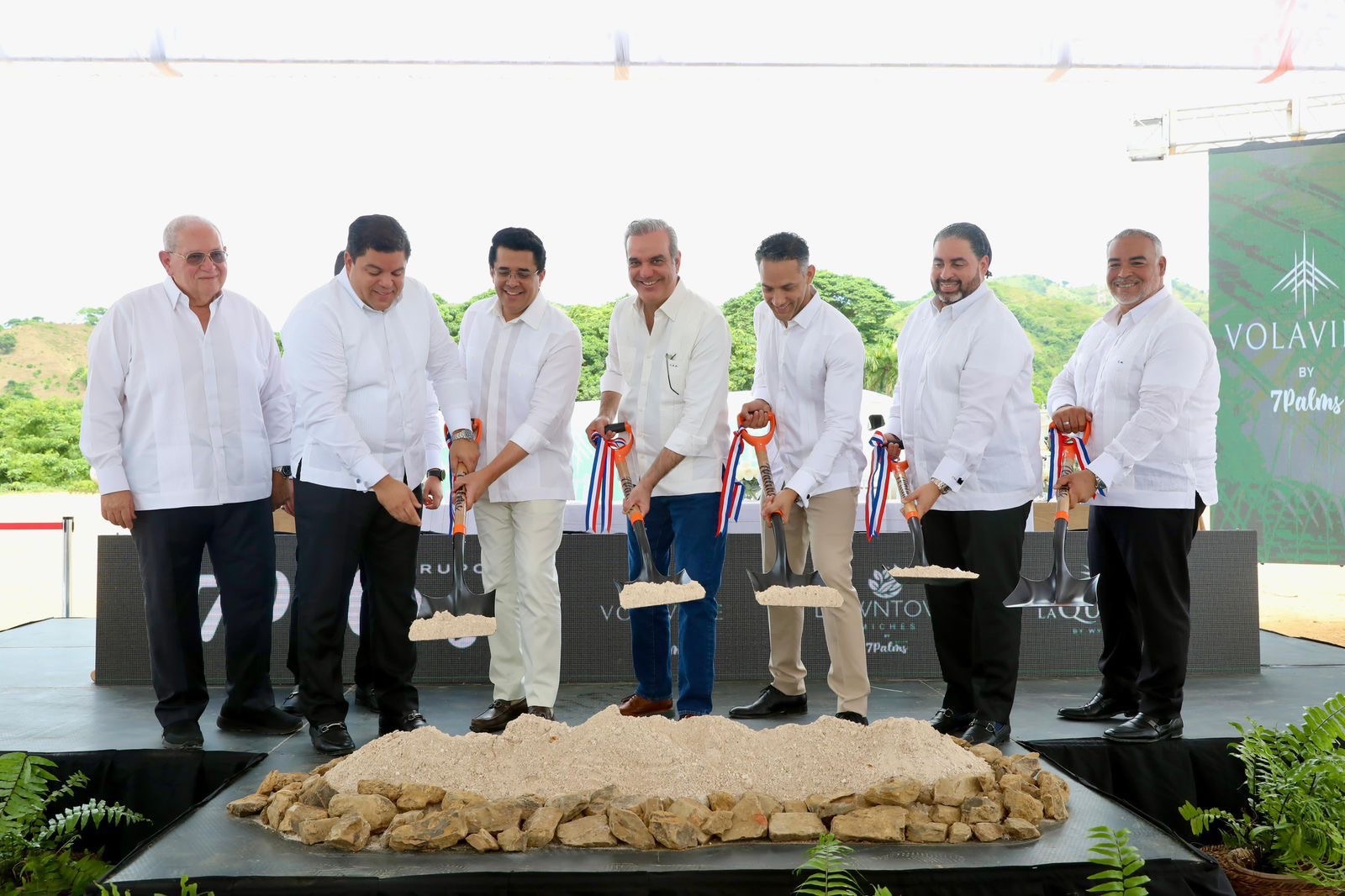 Miches, El Seibo.- El presidente Luis Abinader y el Ministro de Turismo, David Collado, dieron inicio a los trabajos de construcción de dos nuevos hoteles y una plaza comercial, como parte de una alianza entre los grupos 7Palms, De Valle y Wyndham.