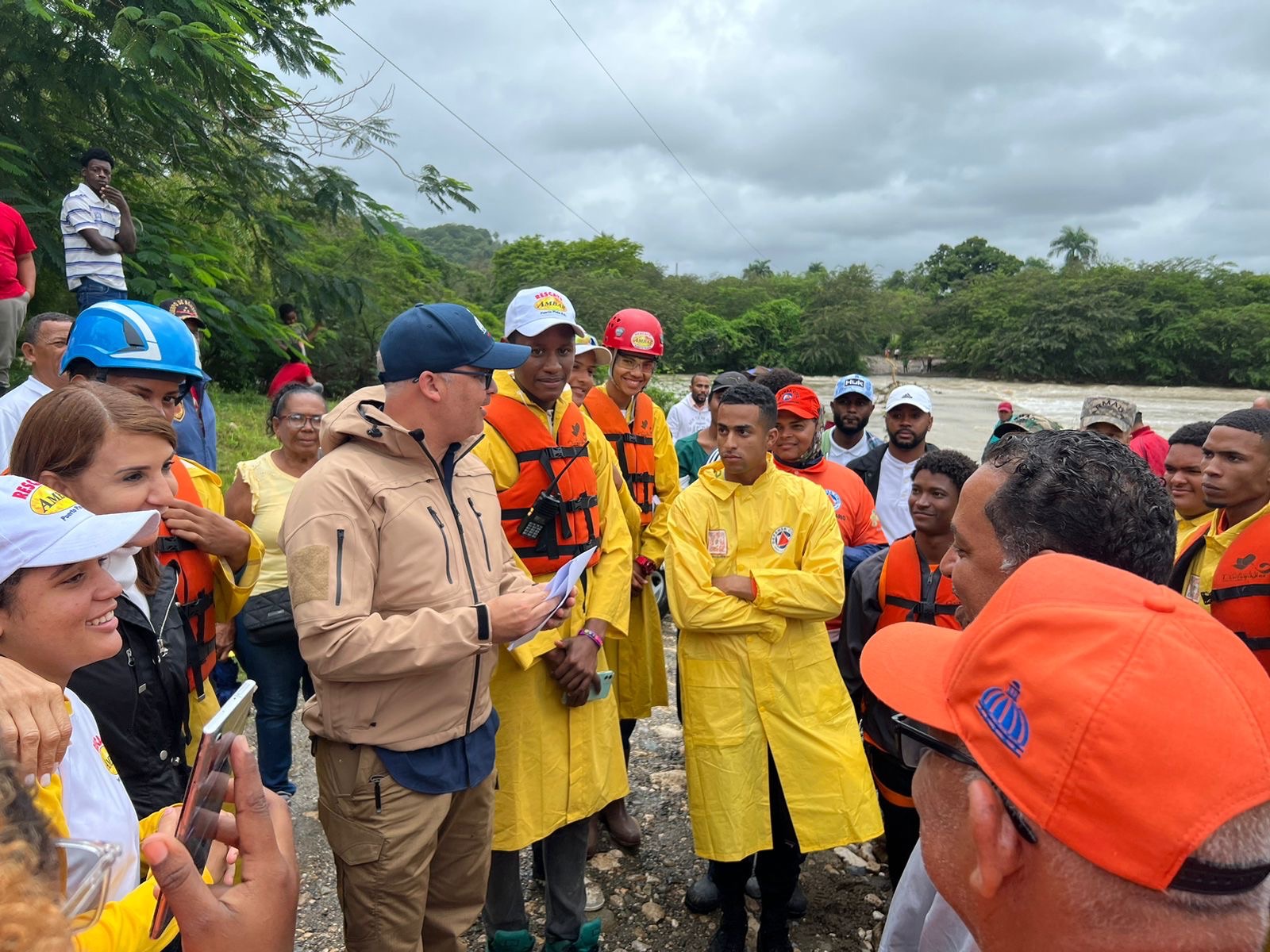 Finalmente se trasladaron al municipio de Imbert para ver la situación del badén de Saballo que mantiene incomunicada a la comunidad de la Piragua, las familias afectadas en esas zonas han estado recibiendo sus raciones de alimentos del Plan de Asistencia Social de la Presidencia.