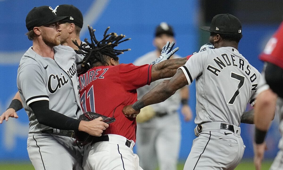 Anderson reapareció en el campo y trató de alcanzar a Ramírez antes de que el primera base de Chicago, Andrew Vaughn, lo envolviera en un abrazo de oso y lo sacara físicamente del campo.