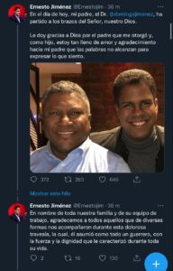 “Buen día, todo mi amor y cariño para el pueblo dominicano. Debo informarles que el cáncer ataca, un nuevo tumor ha aparecido, ahora en la columna vertebral. Seré sometido a tratamiento de radiación, además de la quimio. Nunca olviden mi amor por ustedes.Jesucristo con nosotros!!!”, escribió en su cuenta.