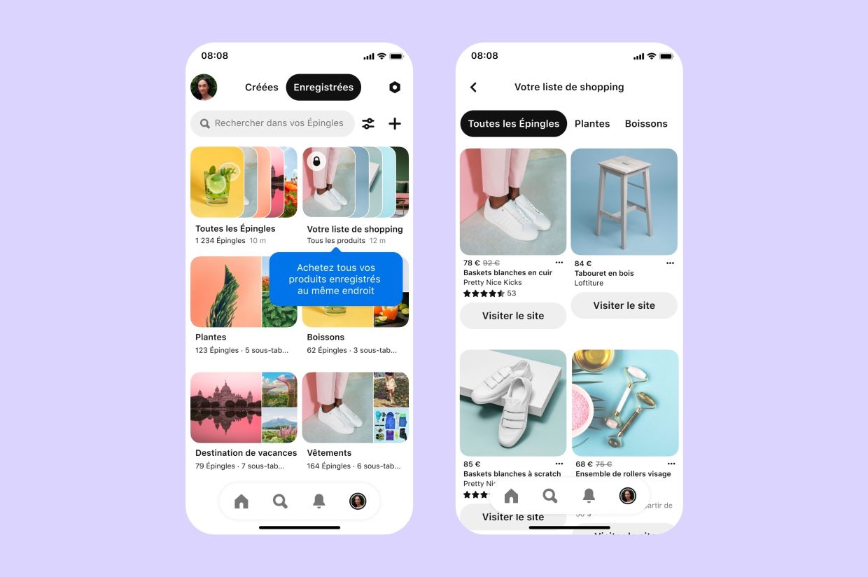 Los usuarios de la plataforma de redes sociales ahora pueden comprar artículos desde su barra de búsqueda a través de la nueva pestaña “Compras” que muestra el 100% de los resultados de compras. Además, la función “Pinterest Lens” aprovecha la cámara de la plataforma para permitir a los usuarios capturar la inspiración de la vida real y luego realizar búsquedas visuales en la plataforma para encontrar elementos similares.