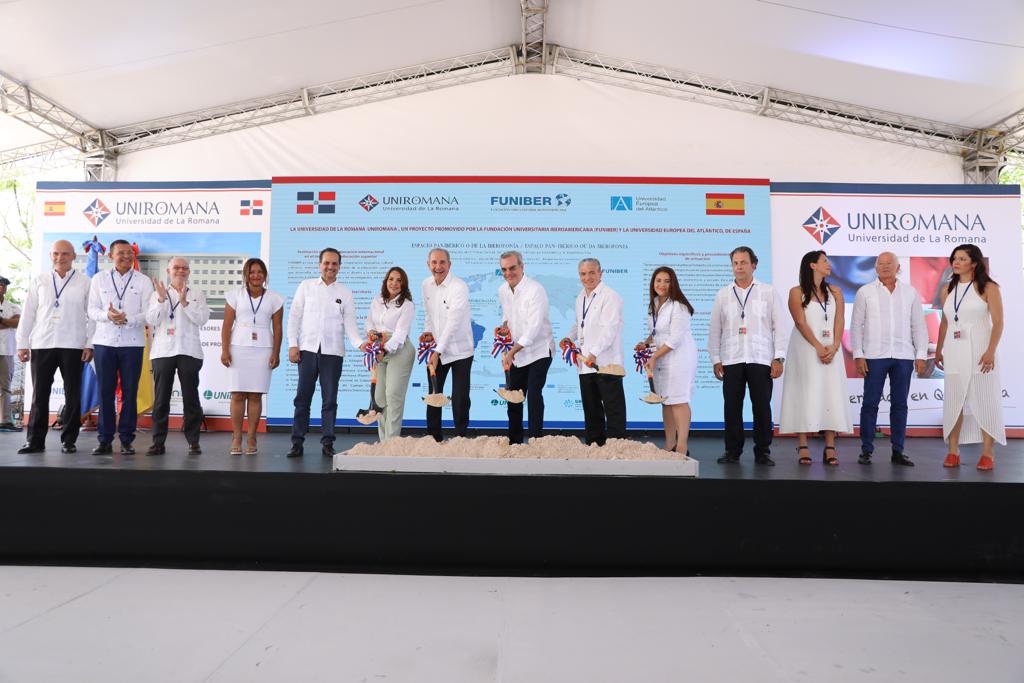 Más temprano, el presidente Abinader encabezó el acto de primer palazo para la construcción de las edificaciones de la Universidad de La Romana (UNIROMANA), proyecto promovido por la Fundación Universitaria Iberoamericana (FUNIBER) y la Universidad Europea del Atlántico, de España.