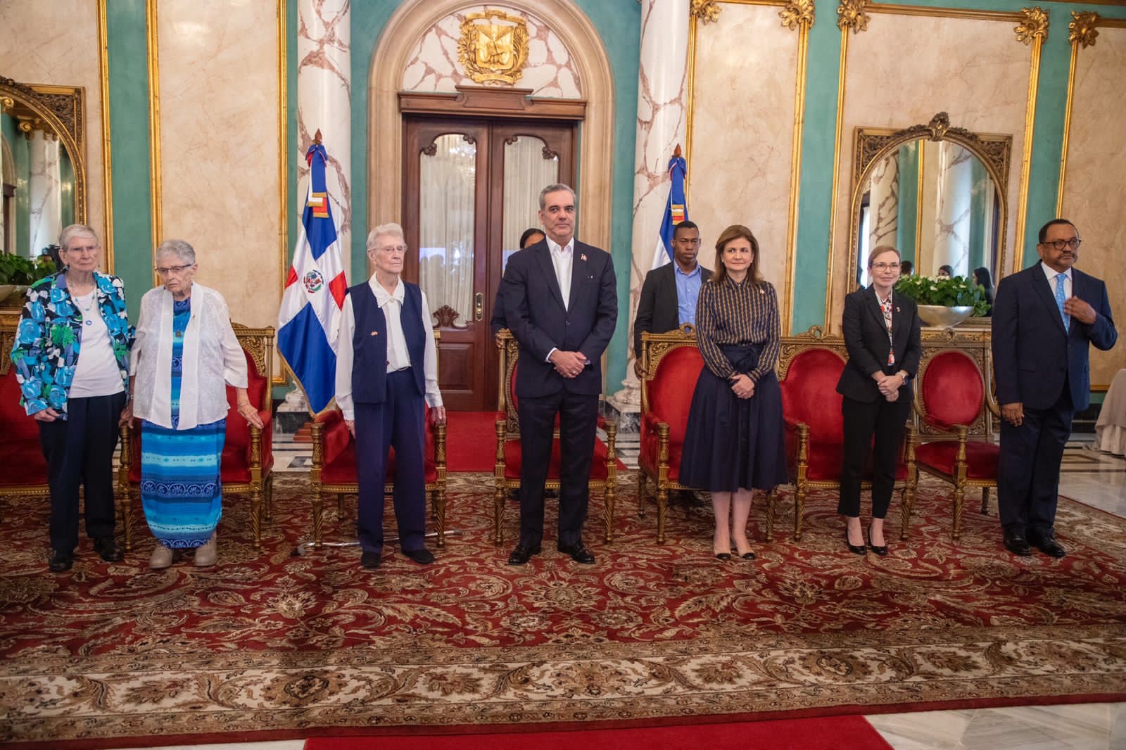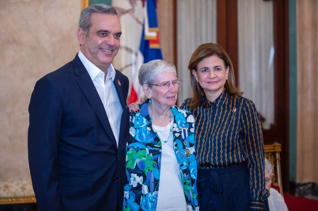 Santo Domingo. – El presidente Luis Abinader, junto a la vicepresidenta Raquel Peña, encabezó la condecoración a tres distinguidas misioneras canadienses, reconocidas como educadoras y líderes comunitarias en el país, que dedicaron su vida a trabajar especialmente en favor de los jóvenes y mujeres de comunidades económicamente deprimidas en el país.