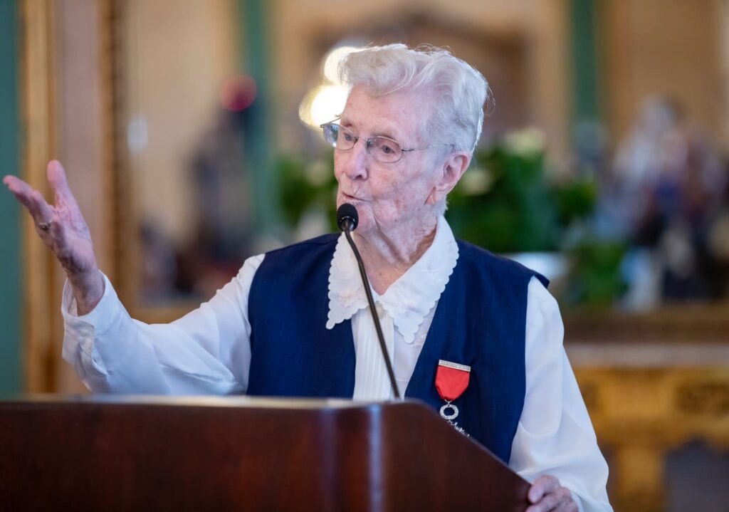 La primera en ser condecorada fue Lenore Gibb, que recibió la Orden Heráldica de Cristóbal Colón en el grado de Caballero.