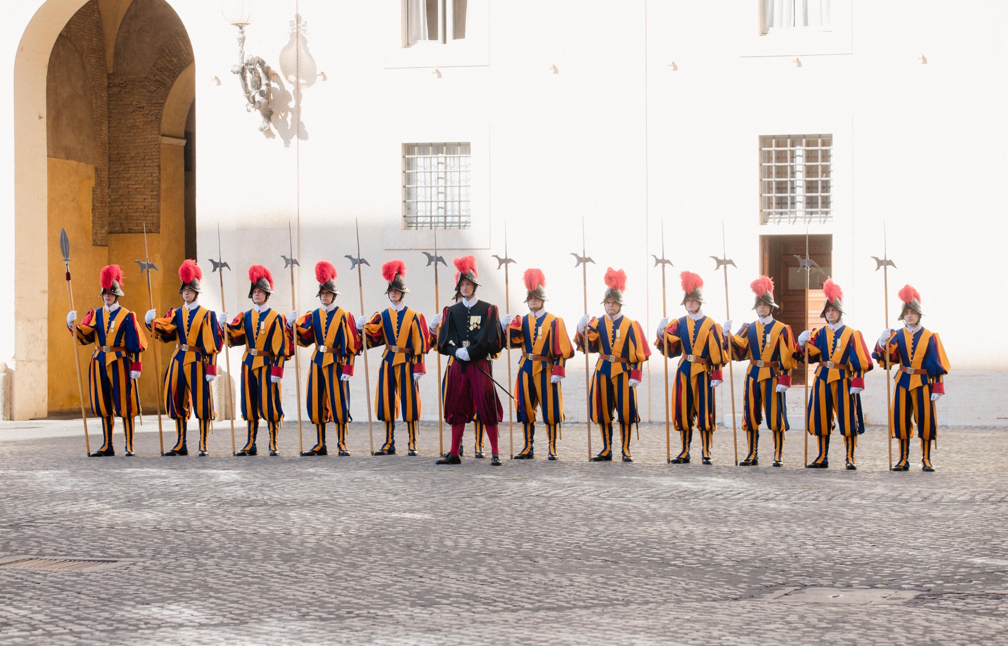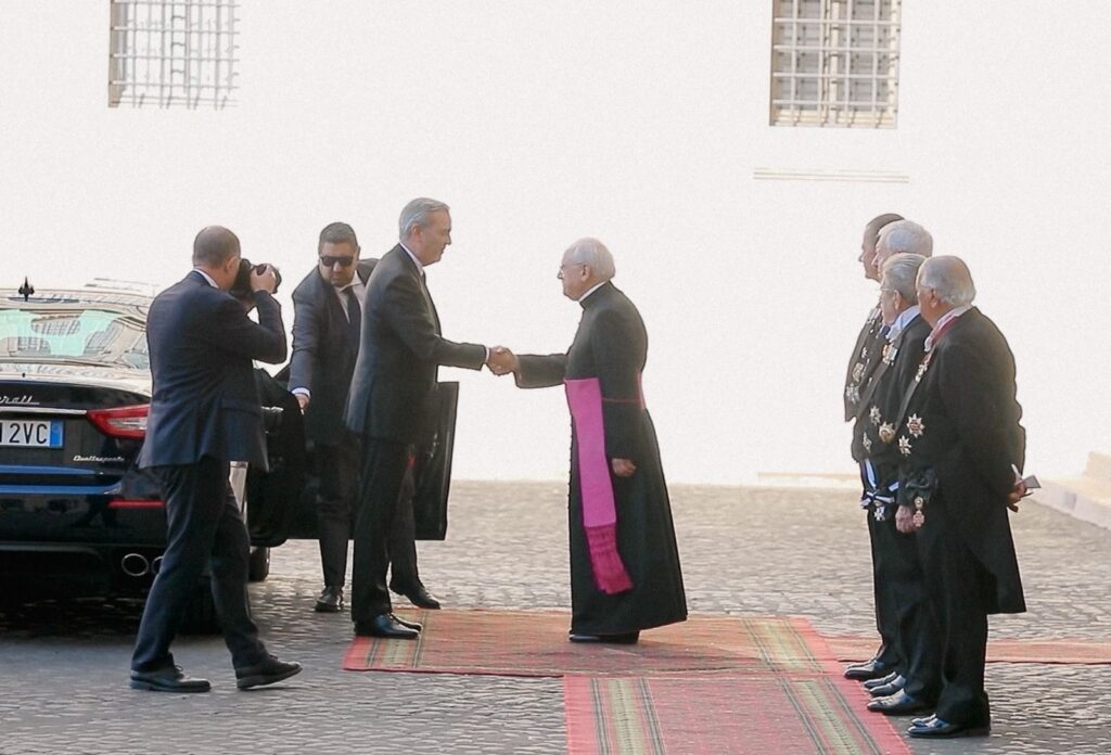 El presidente Abinader y sus acompañantes fueron recibido por el cortejo de los gentiles hombres de su Santidad