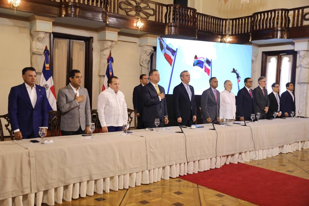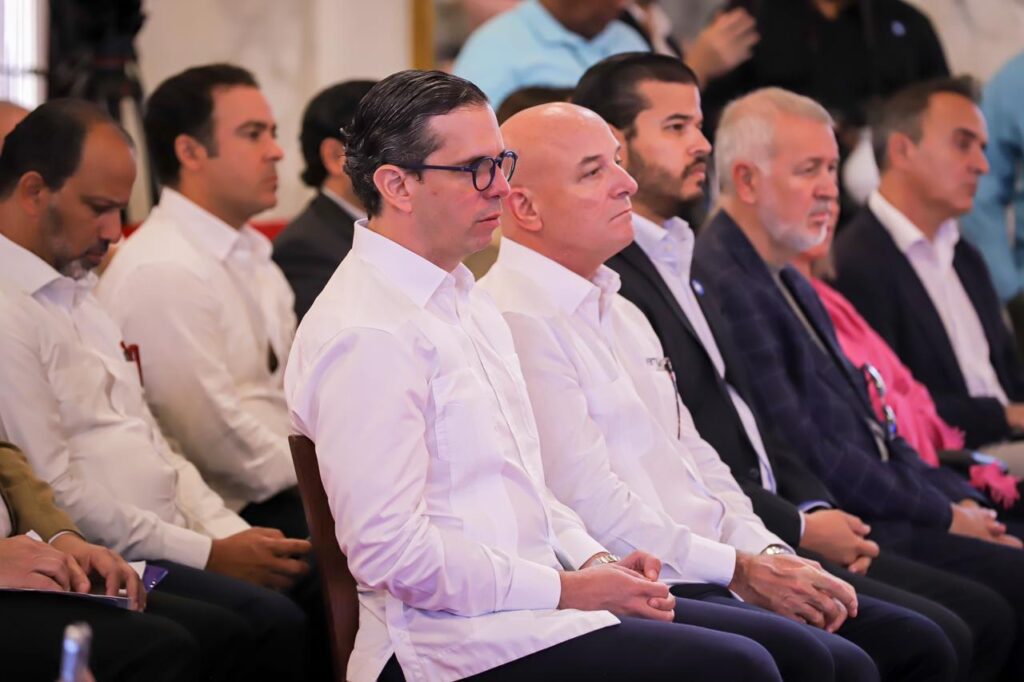 Acompañaron al presidente Abinader los ministros de la Presidencia, Joel Santos; Administrativo de la Presidencia, José Ignacio Paliza; el gerente de la Fiduciaria Reservas, Andrés Vander Horts; los presidentes de la Liga Municipal Dominicana, Víctor de Aza y de la Federación Dominicana de Municipios (Fedomu), Kelvin Cruz; la directora de Red Nacional de Apoyo Empresarial a la Protección Ambiental (Ecored), Dania Heredia; el vicepresidente de la Asociación de Industrias de la República Dominicana (AIRD), Mario Pujols; el asesor del ministerio de Hacienda, Gian Luca Marra y el representante de industrias de residuos, Johan González.