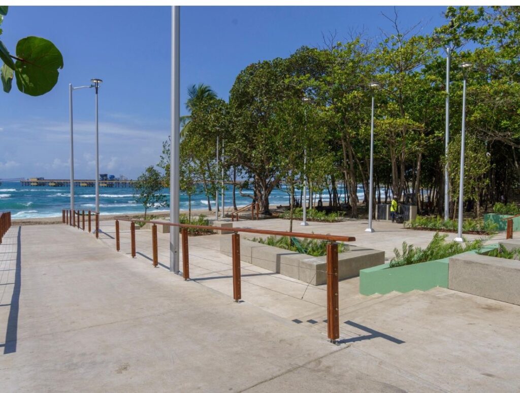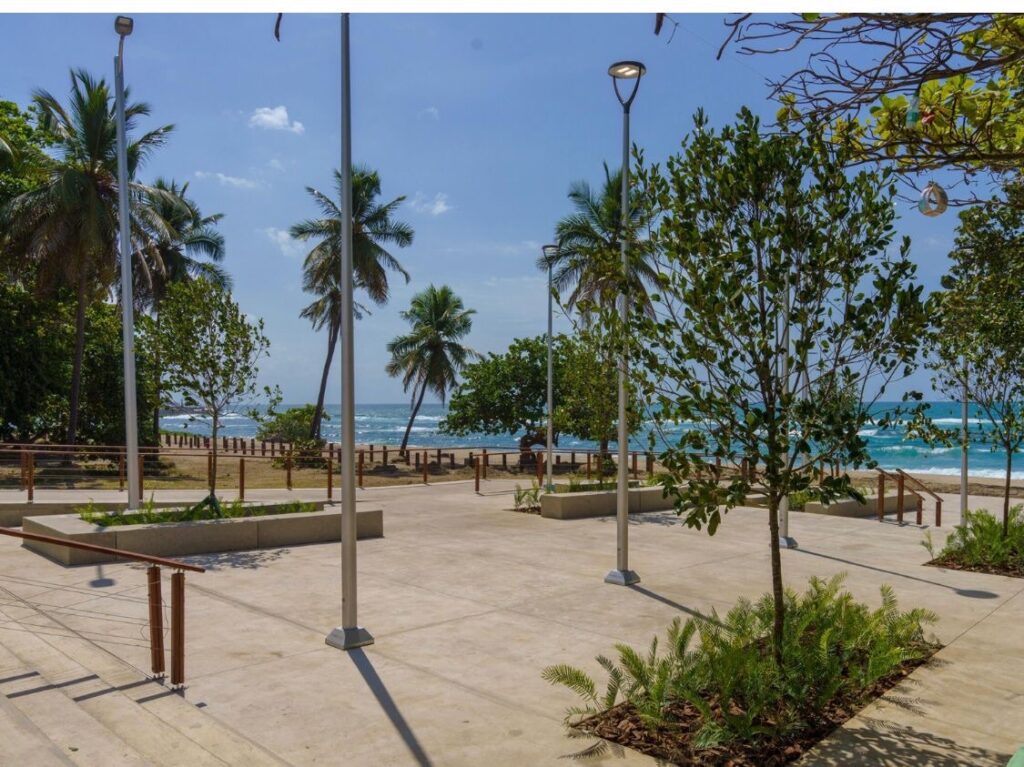 La obra incluye la intervención paisajística a todo lo largo del malecón y el asfaltado de la vía, además de 1,885 metros cuadrado de aceras, garita de seguridad, baños, iluminación, entre otros equipamientos.