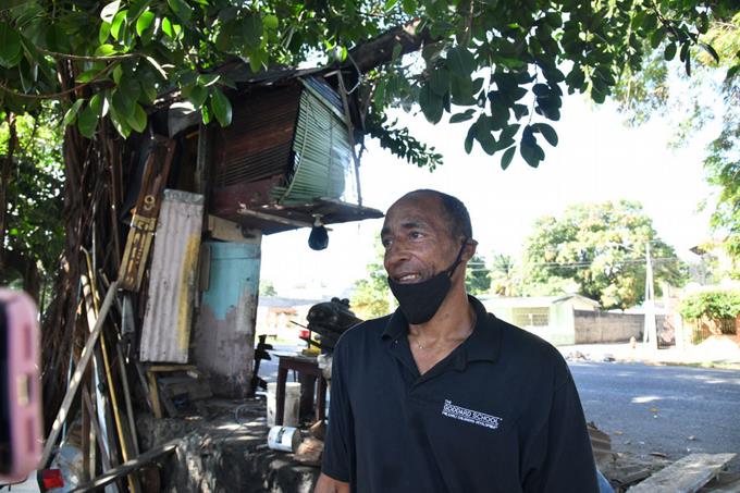 Su casita hecha de madera y piezas de zinc fue construida por él mismo con un tamaño aproximado de 10 pies de ancho y largo. Allí duerme, ve televisión, tiene su nevera.