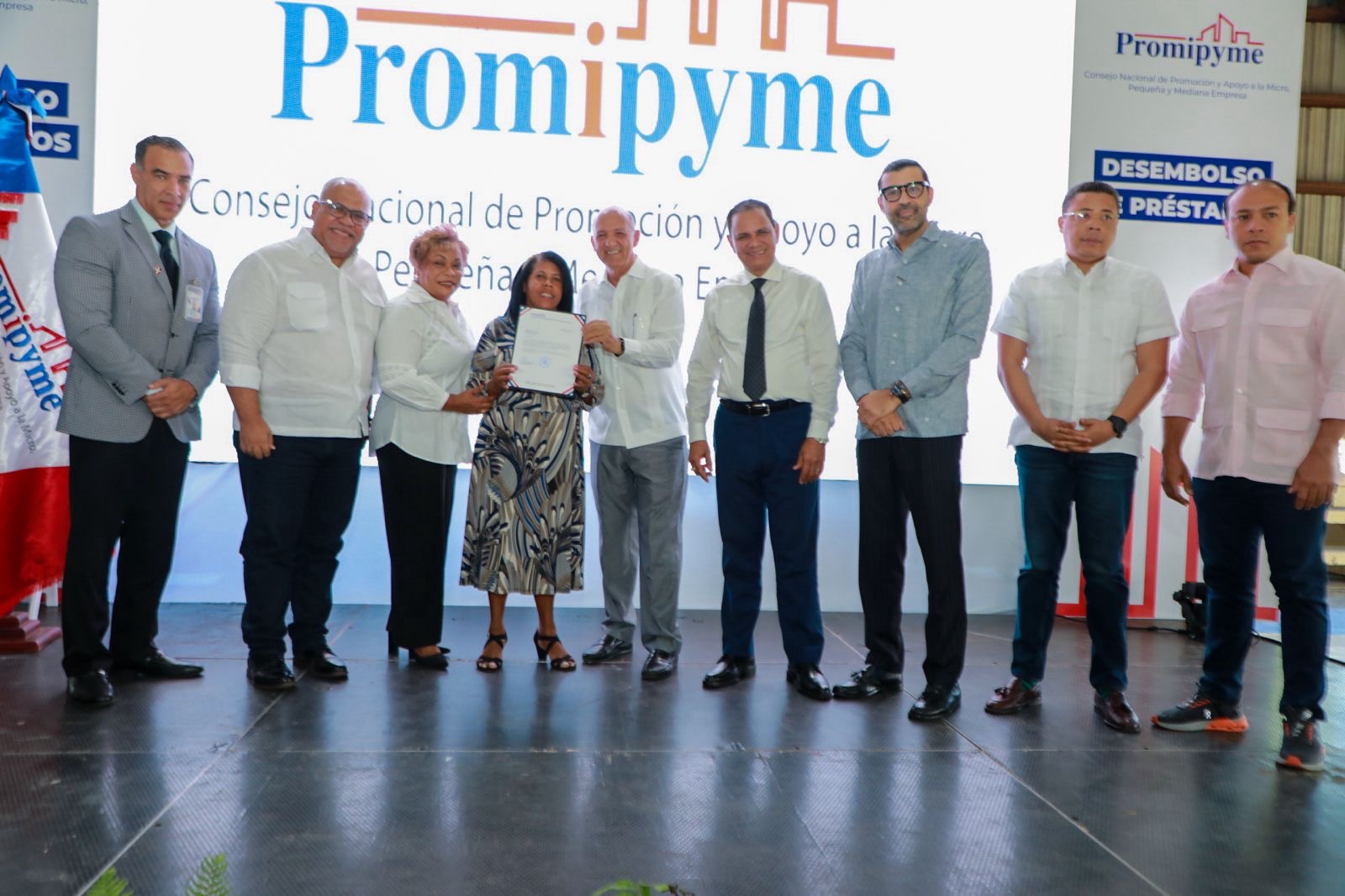 Los créditos fueron otorgados por el director de Promipyme, Fabricio Gómez Mazara, en un evento realizado en el Club Multiuso Víctor Burgos de Sabana Perdida, en Santo Domingo Norte.