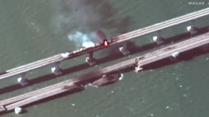La oleada de bombardeos, a una escala no vista en meses, se produce dos días después de una explosión que destruyó parcialmente el estratégico puente de Crimea, que usa para el suministro de sus tropas en Ucrania.