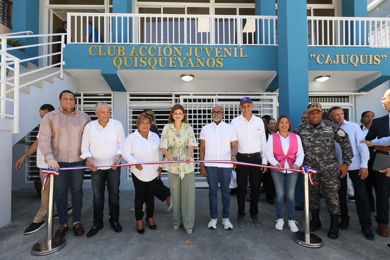 Santo Domingo Oeste, RD. – La vicepresidenta de la República, Raquel Peña, encabezó este viernes el acto de entrega del Club Acción Juvenil Quisqueyano (Cajuquis), un espacio deportivo y recreativo que impactará a más de 800 jóvenes que practican disciplinas como karate, boxeo, ping pong, ajedrez, entre otras.