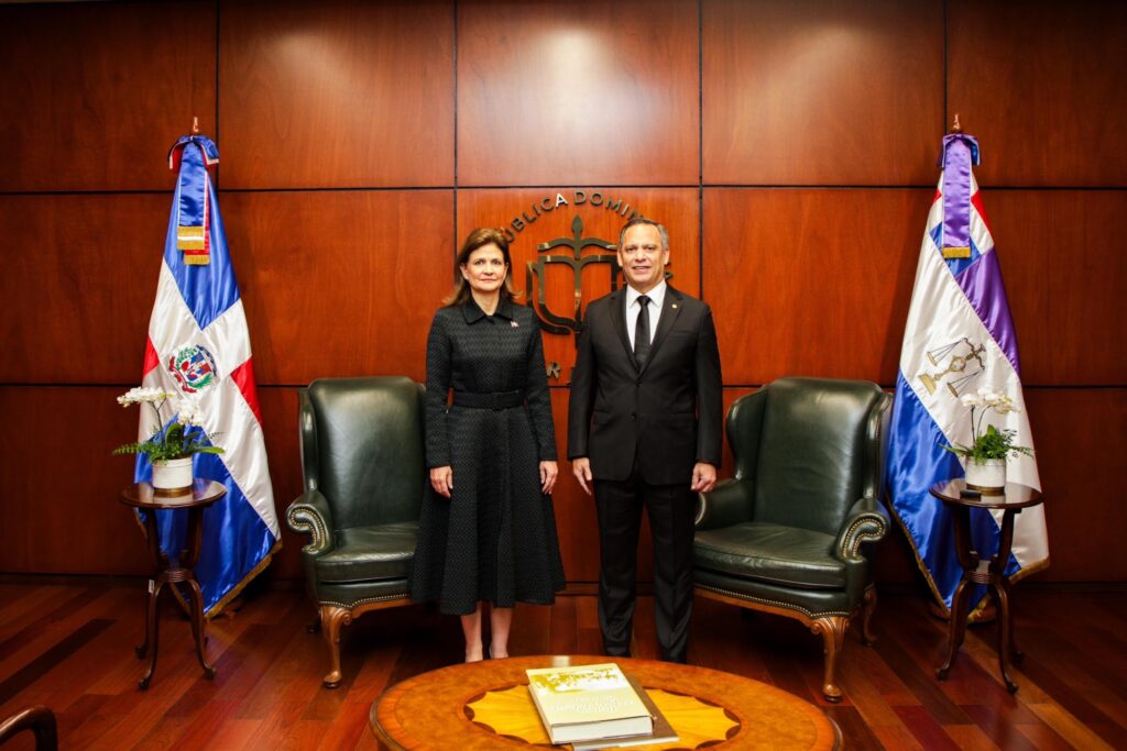 El acto fue celebrado en la sala Augusta de la Suprema Corte de Justicia, donde la vicemandataria fue recibida por Henry Molina, quienes sostuvieron un encuentro previo a iniciar la audiencia.