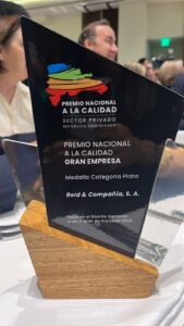 SANTO DOMINGO. – Reid & Compañía, S. A. fue reconocida con medalla de plata, en el renglón Gran Empresa, en la ceremonia de entrega del Premio Nacional a la Calidad del Sector Privado de República Dominicana, principal reconocimiento nacional que se otorga a la gestión de calidad y excelencia de las empresas dominicanas, organizado por la Asociación Nacional de Empresas e Industrias de Herrera (ANEIH).