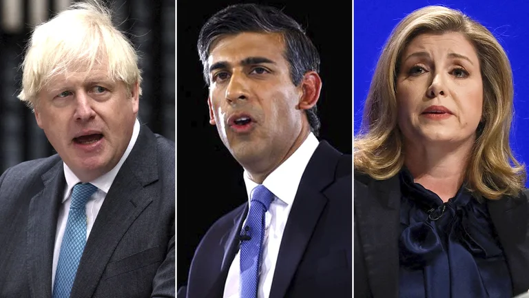 Boris Johnson, Rishi Sunak y Penny Mordaunt, los principales aspirantes a liderar el partido conservador británico
