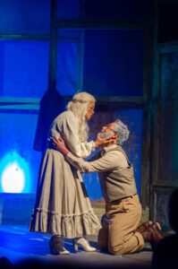 Un montaje teatral que cuenta la historia de una pareja de ancianos, aislados de la sociedad -en un intento absurdo por justificar su existencia- recrean la llegada de figuras imaginarias para quienes alegan haber preparado “un gran mensaje”.