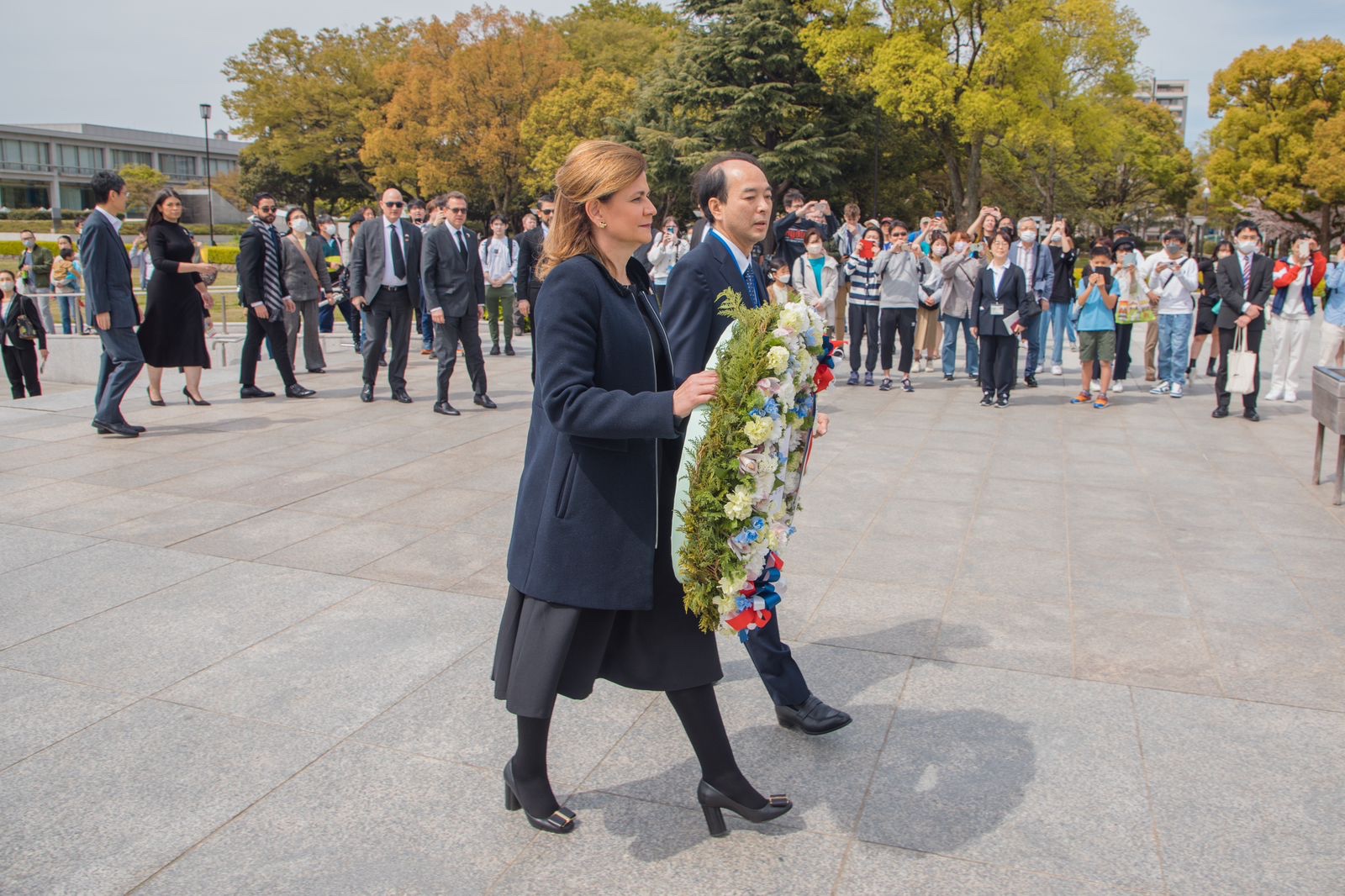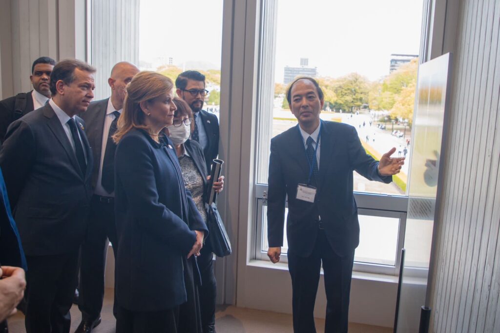 La segunda mandataria de la nación visitó esta ciudad, como parte de su visita a Japón en representación del gobierno del presidente Luis Abinader, depositando una ofrenda floral en el monumento a los caídos.