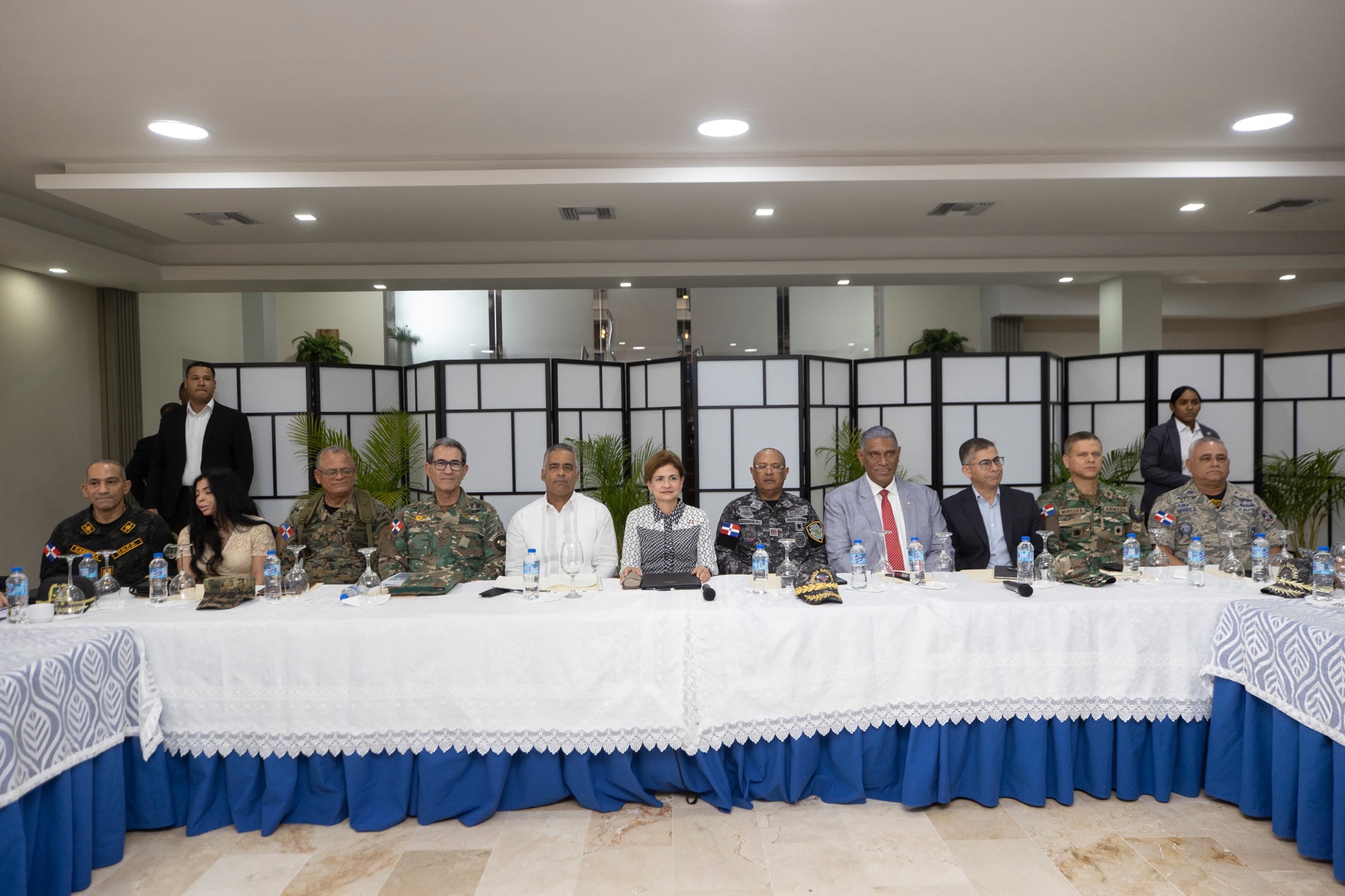 Acompañaron a la vicepresidenta los ministros, de la Presidencia, Joel Santos; de Defensa, teniente general Carlos Luciano Díaz Morfa; de Interior y Policía, Jesús Vásquez Martínez; el director de la Policía Nacional, mayor general Ramón Antonio Guzmán Peralta; el comandante general del Ejército, mayor general Carlos Antonio Fernández Onofre; y el comandante general de la Armada de República Dominicana, vicealmirante, Agustín Alberto Morillo Rodríguez.
