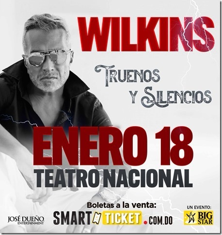 Santo Domingo, República Dominicana – Luego de varios años de ausencia, la leyenda de la canción Wilkins se presentará en suelo dominicano. El cantante y compositor puertorriqueño presentará su gira “Truenos y Silencios” el sábado 18 de enero a las 8:30 p.m. en la Sala Principal Carlos Piantini del Teatro Nacional Eduardo Brito de Santo Domingo, República Dominicana.